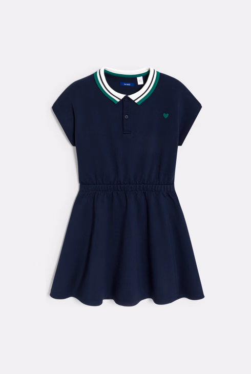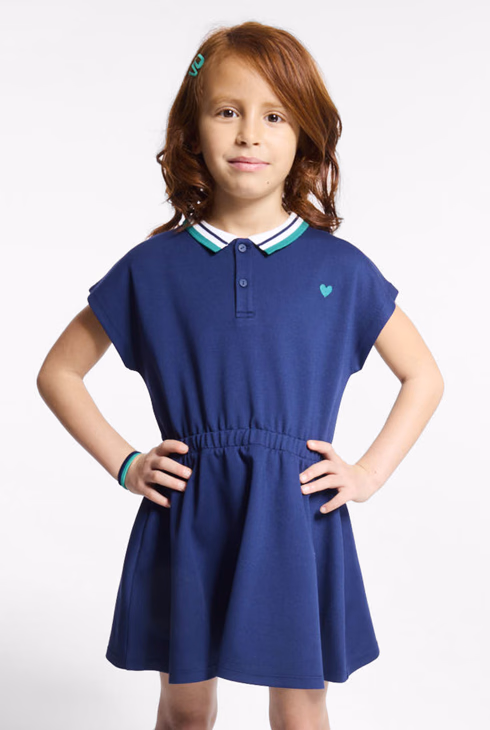 Abito a polo tinta unita blu navy bambina
