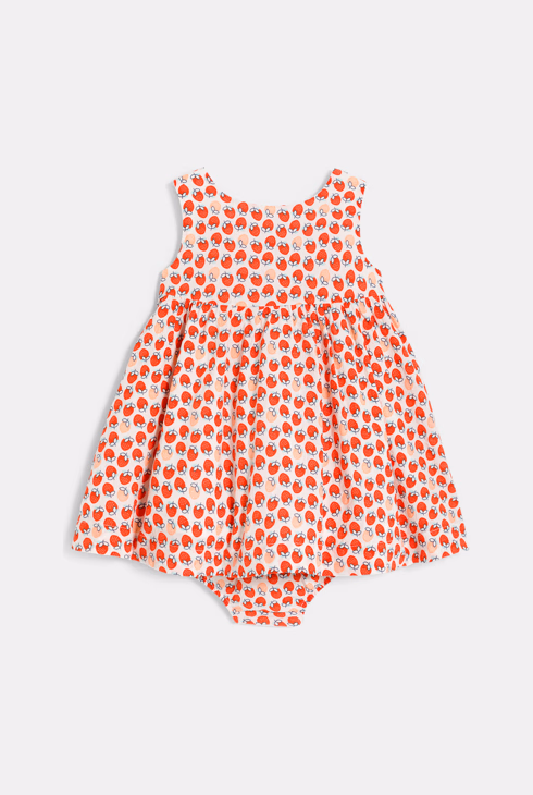 Abito con spalline goffrato a fiori e bloomer arancione neonata