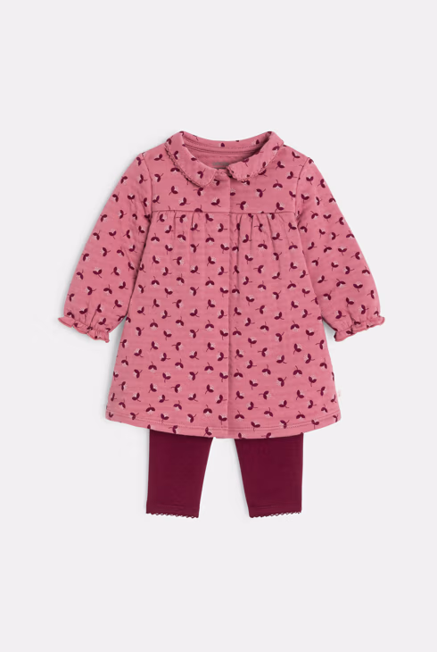 Abito floreale in cotone fantasia e leggings rosa per neonata