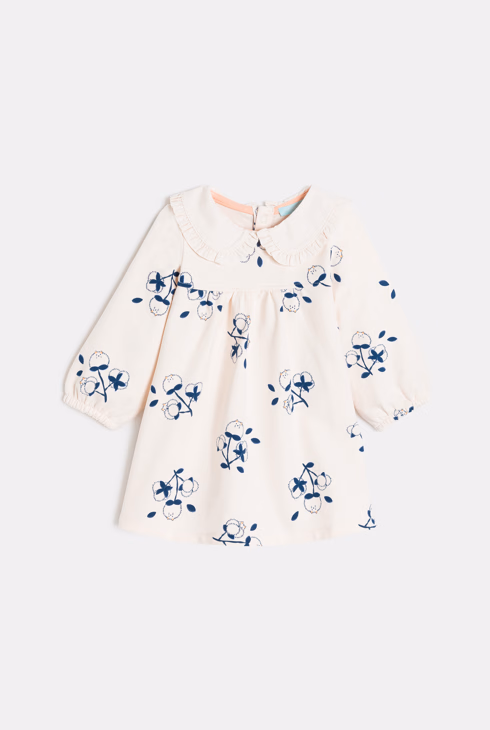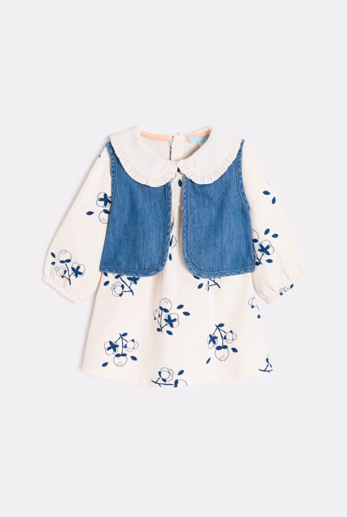 Abito in tessuto felpato leggero e gilet in denim bianco neonata