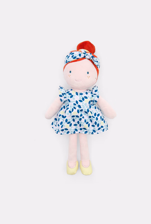 Bambola morbida in velluto con abito con limoni stampati neonata