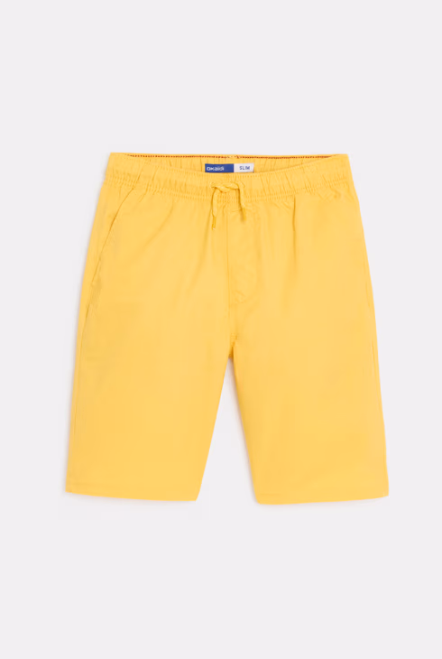 Bermuda aderenti in tela tinta unita giallo per Bambino