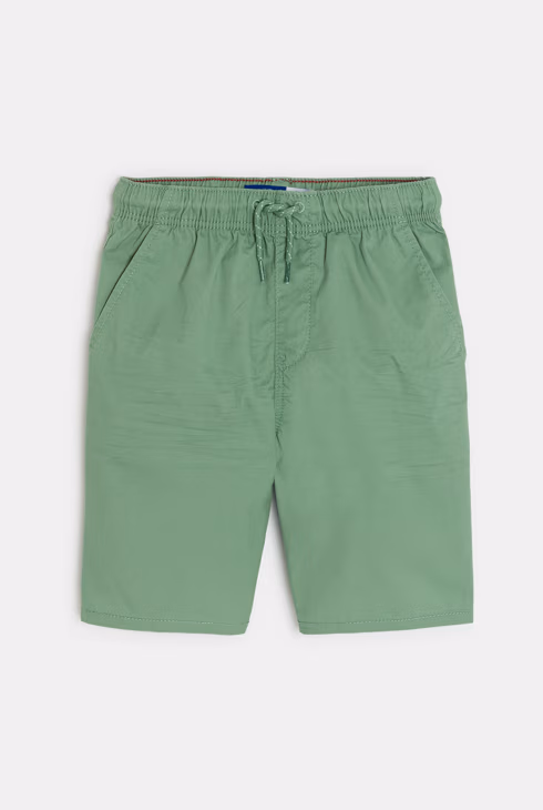 Bermuda slim fit in tela tinta unita verde per bambino