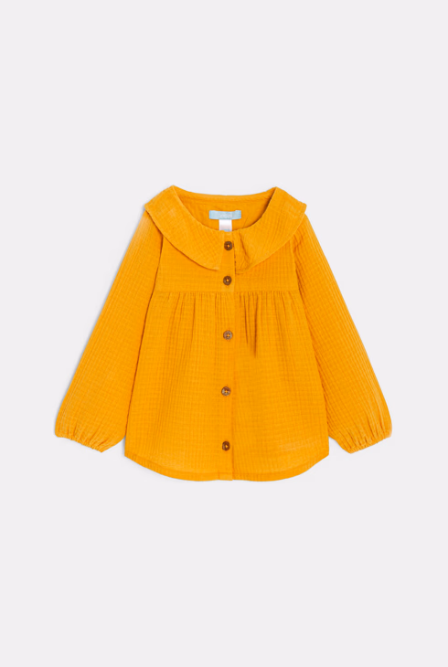 Blusa arancione in garza di cotone a nido d'ape neonata