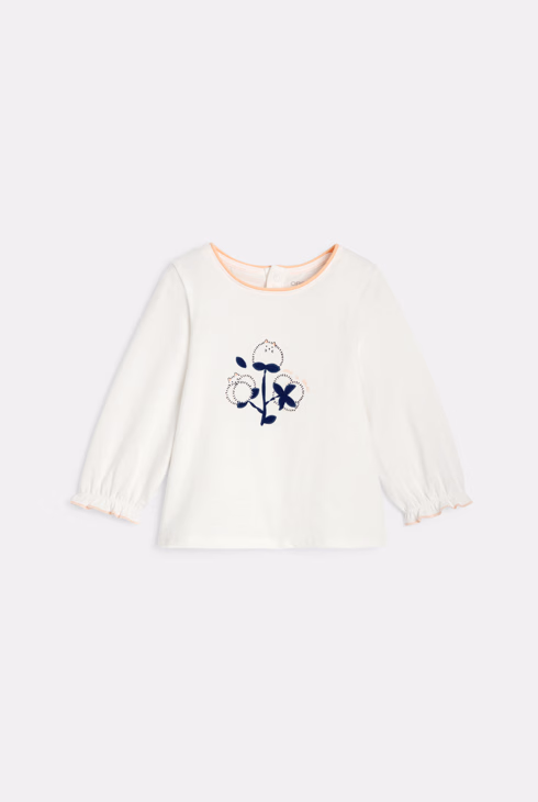 Blusa bianca con fiori e gatto per neonata