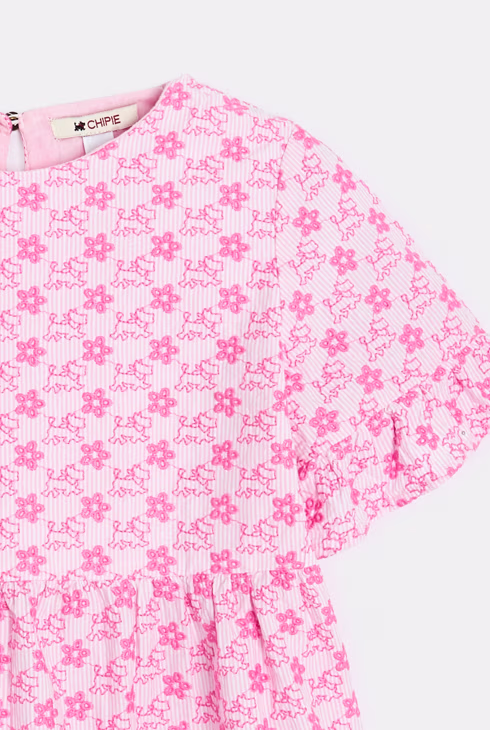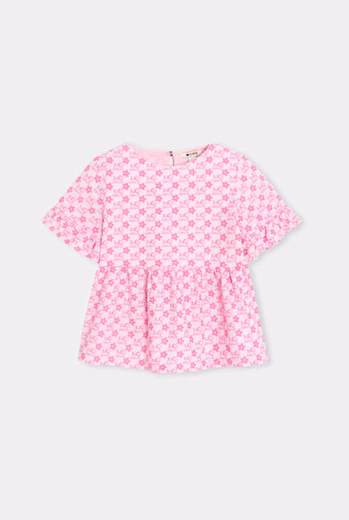 Blusa di cotone rosa ricamata con volant per bambina Chipie