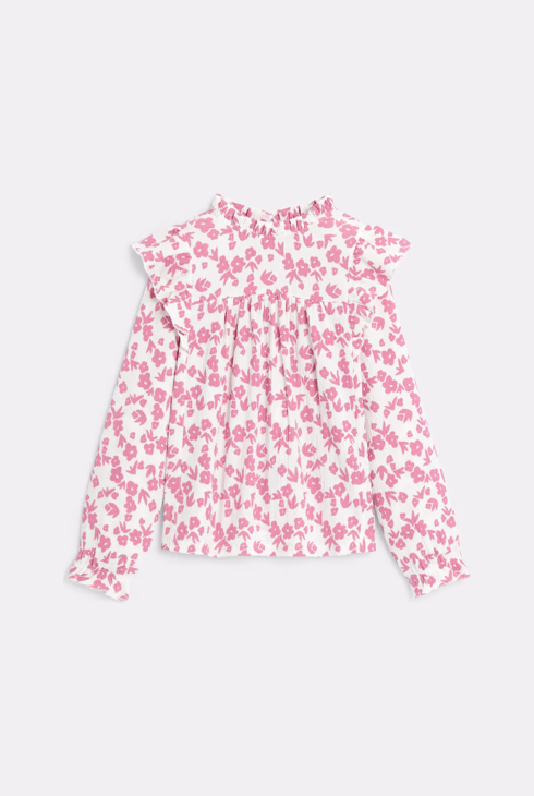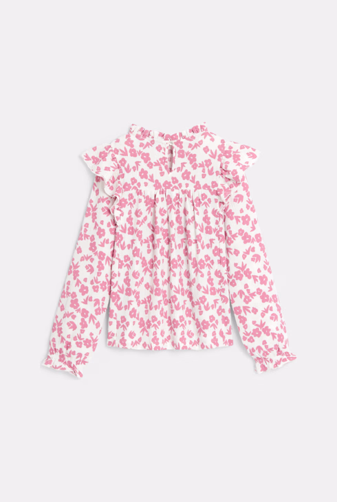 Blusa rosa stampata con volant per bambina