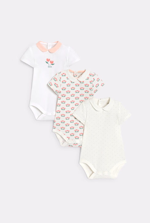 Body a maniche corte con collettino bianco a fiori neonata (confezione da 3)