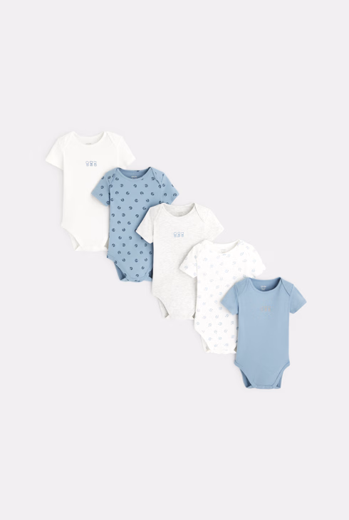 Body a maniche corte scollo all'americana (set di 5 pezzi) blu neonati