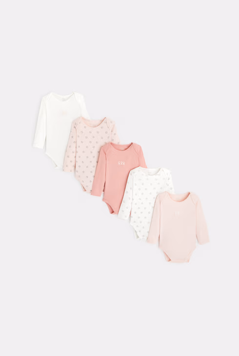 Body a maniche lunghe scollo all'americana (set di 5 pezzi) rosa neonati
