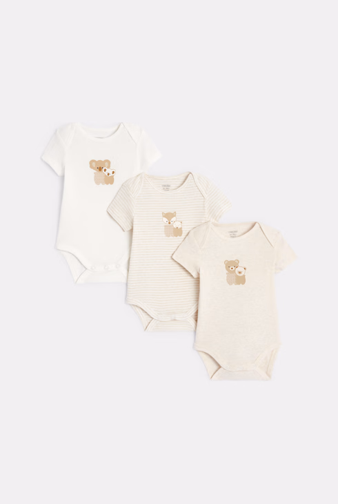 Body beige a maniche corte scollo all'americana unisex per neonato (confezione da 3)