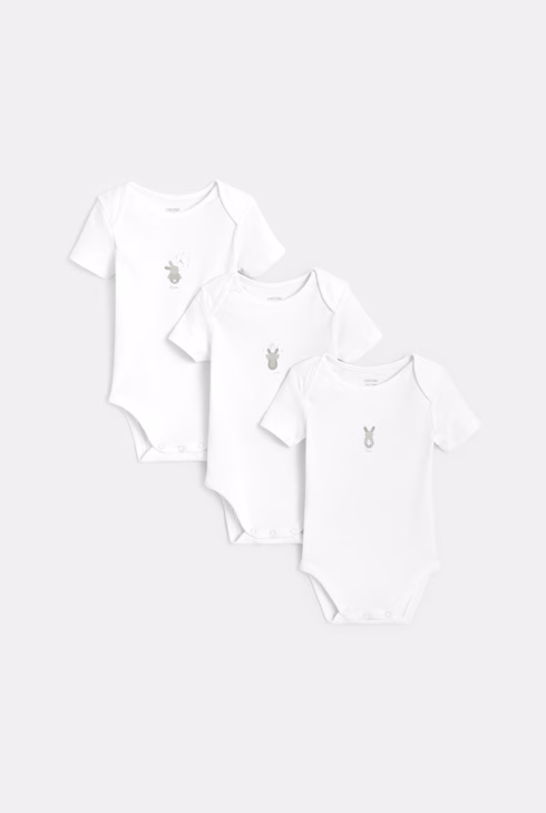 Body con scollo all'americana conigli (set di 3) bianco neonati