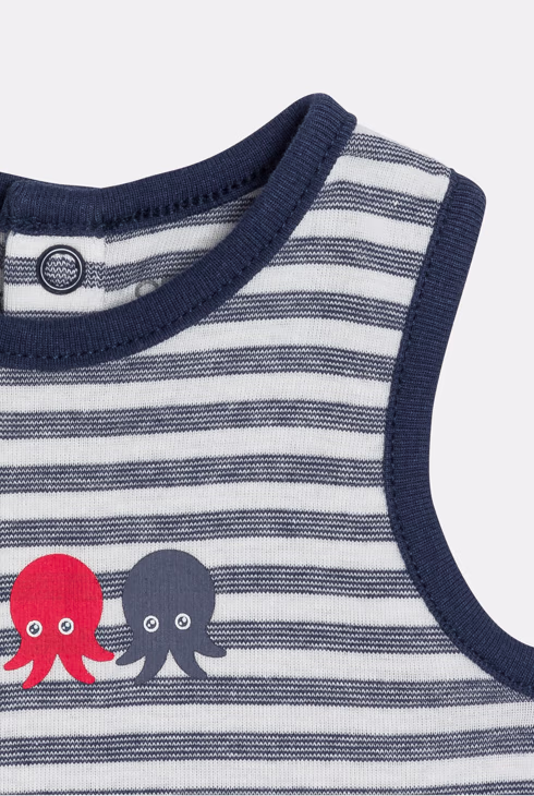Body senza maniche blu a righe con polpo neonato (set di 3)