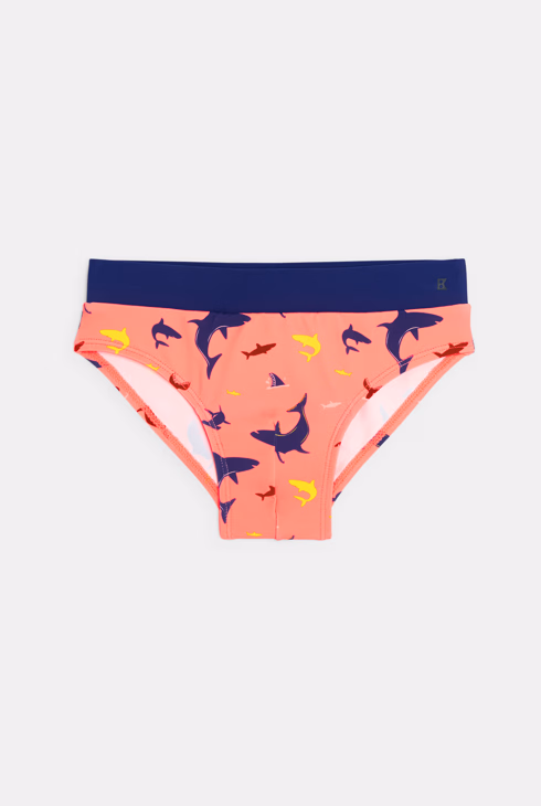 Boxer mare a righe con stampa squalo arancio per bambino