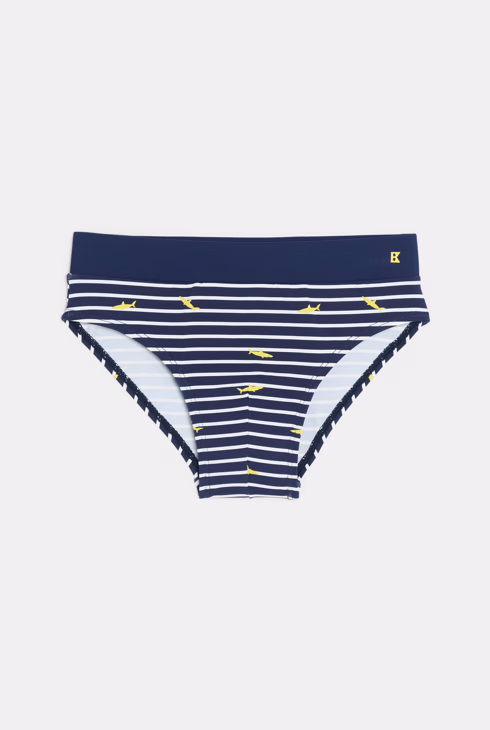Boxer mare a righe con stampa squalo blu per bambino