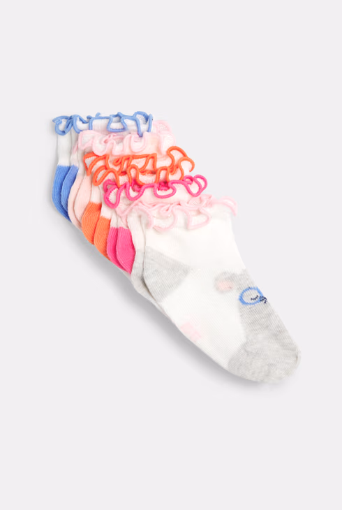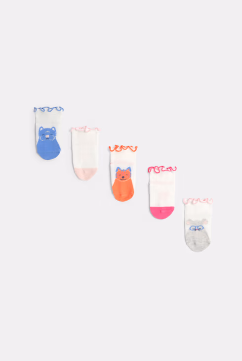 Calzini corti multicolori con fantasia di animali per neonata (set di 5 paia)