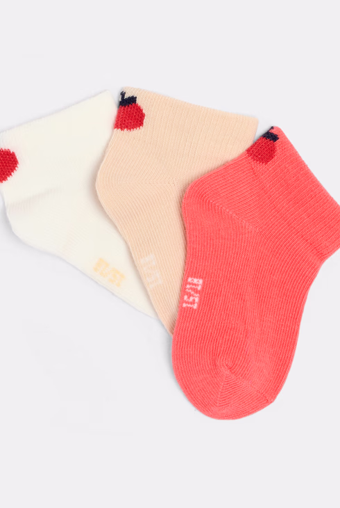 Calzini rosa con frutti per neonata (set di 3 paia)