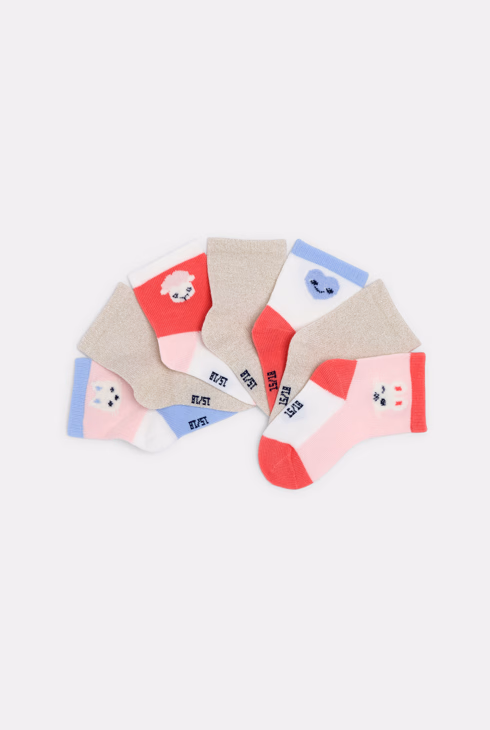 Calzini rosa con musetto per neonata (set da 7 paia)