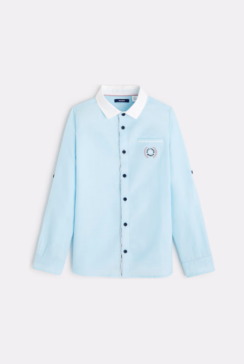 Camicia bicolore in popeline blu bambino