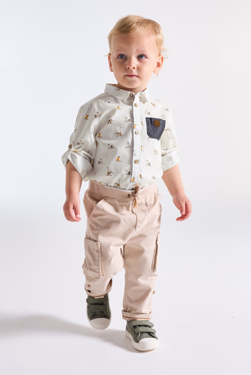 Camicia versatile bianca con animali per neonato