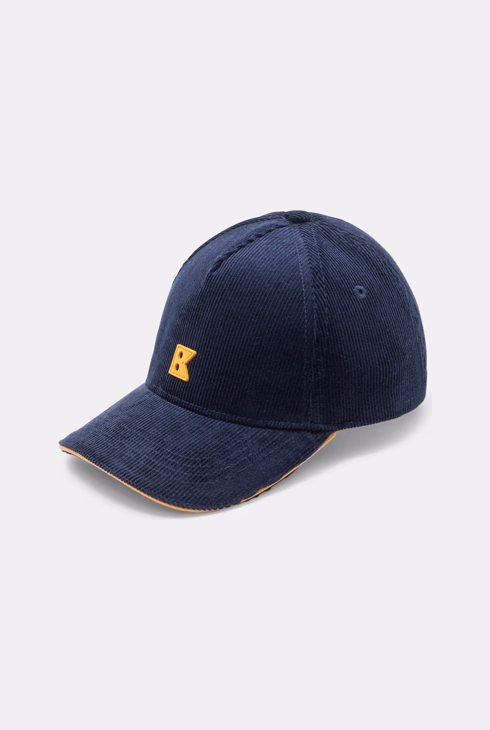 Cappellino blu navy tinta unita in velluto a coste per bambino