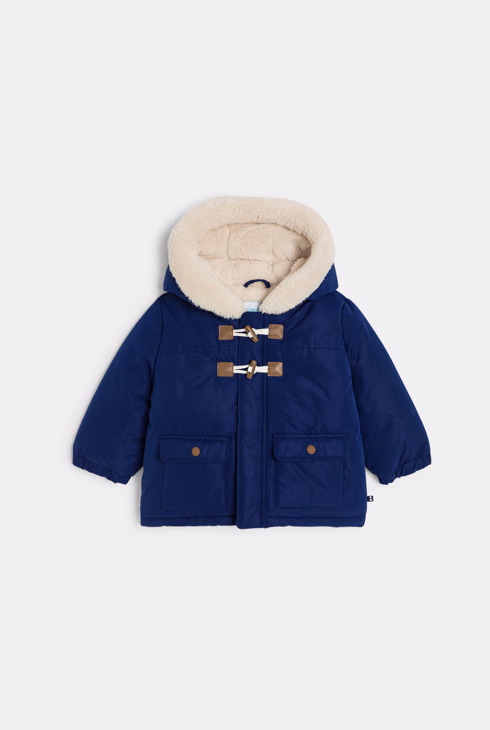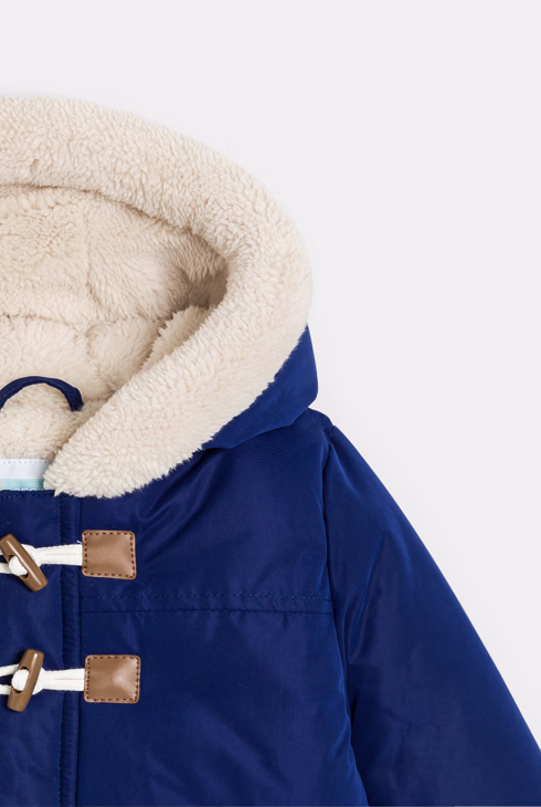 Cappotto blu con cappuccio foderato in sherpa per neonato