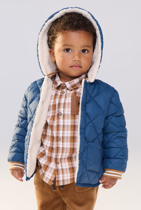 Cappotto blu double face trapuntato foderato in sherpa per neonato