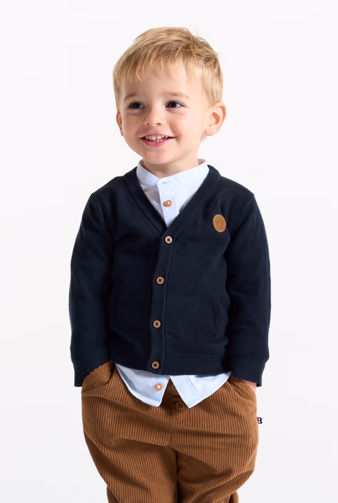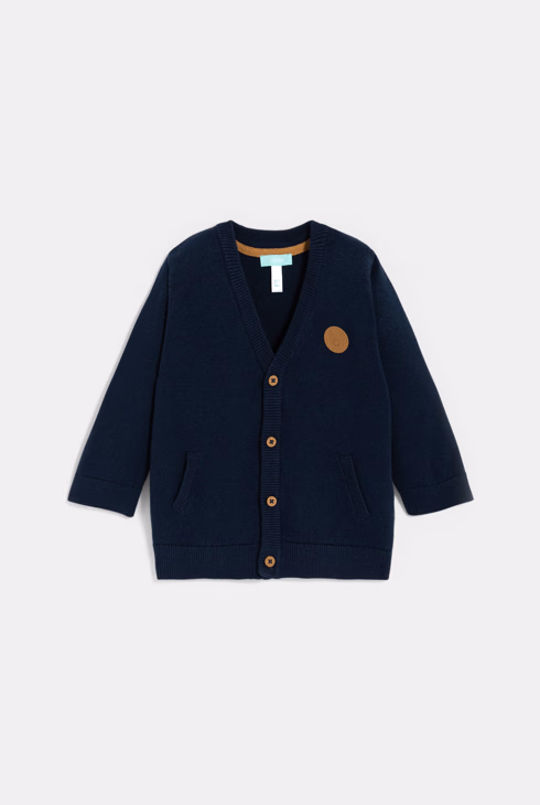 Cardigan blu lavorato a maglia per neonato