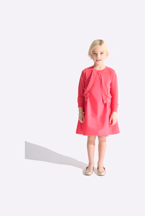 Cardigan rosa in maglia effetto pointelle per Bambina
