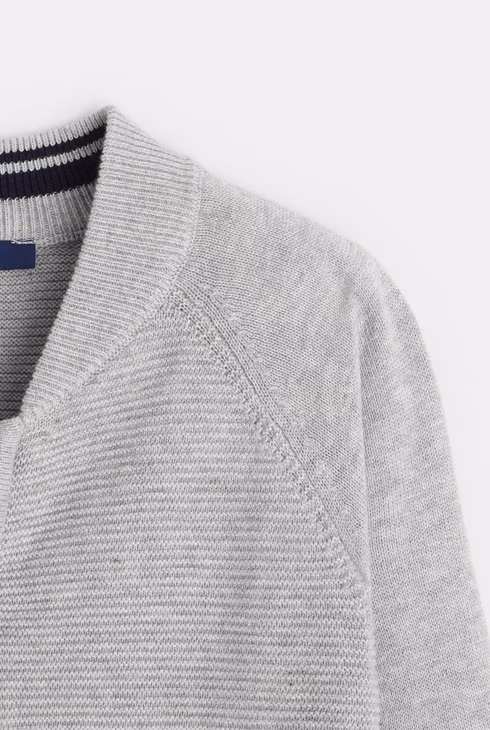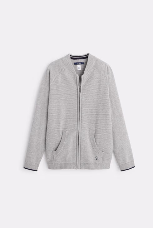 Cardigan stile teddy con cerniera in maglia fine grigio bambino