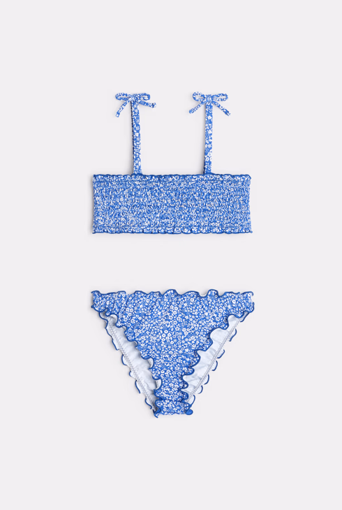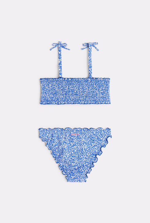 Costume da bagno 2 pezzi a fiori blu bambina