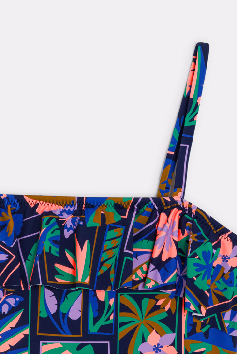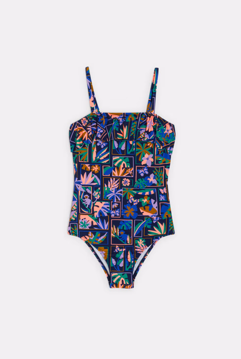 Costume da bagno intero nero con stampa per bambina