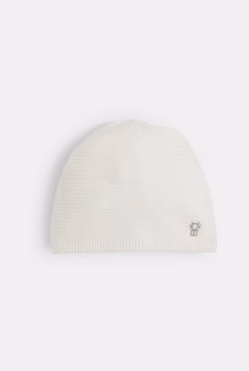 Cuffietta nascita bianca in maglia a costine