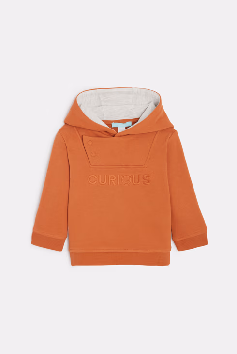 Felpa arancione con cappuccio in tessuto felpato per neonato