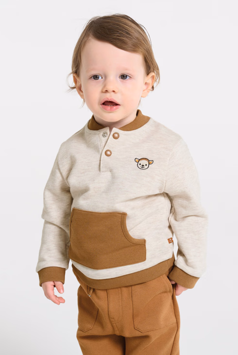 Felpa beige in tessuto felpato con colletto teddy per neonato