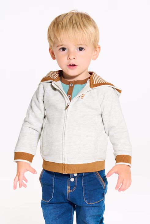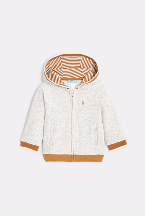 Felpa grigia con cappuccio e zip in tessuto felpato per neonato
