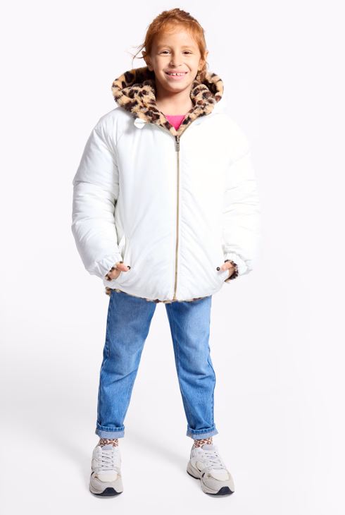 Giubbotto bianco double face in pelliccia ecologica per bambina