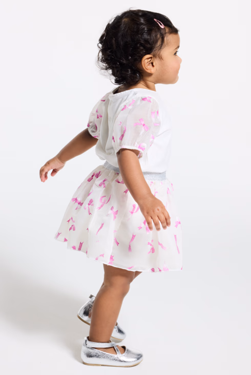 Gonna morbida rosa con fiocchi e cintura lucida in vita per neonata