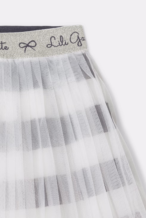 Gonna plissettata in tulle a righe bianche e nere per bambina Lili Gaufrette