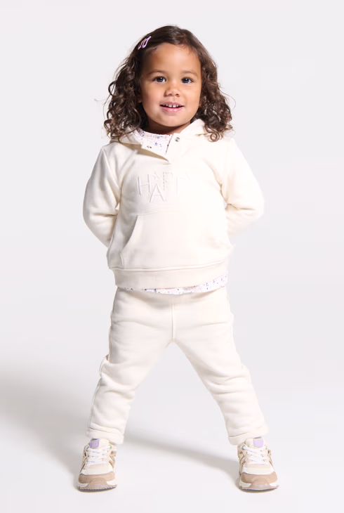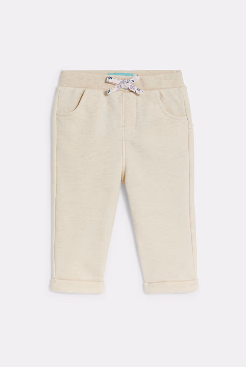 Joggers beige in tessuto felpato per neonata
