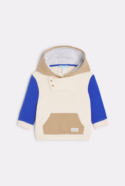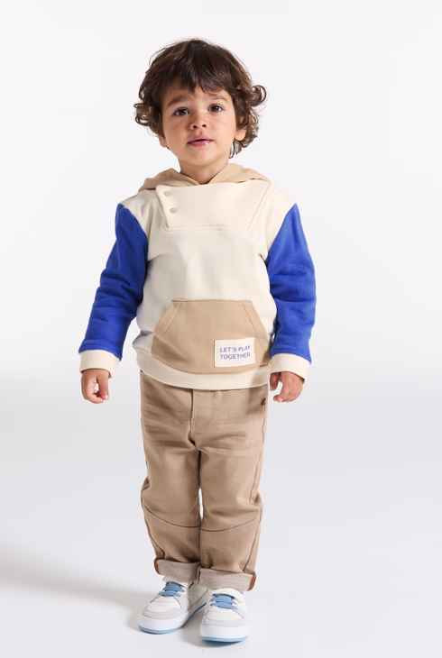 Maglia con cappuccio in tessuto felpato beige per neonato