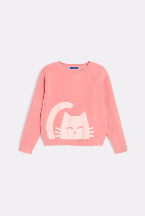 Maglione rosa con motivo gatto davanti e dietro per Bambina