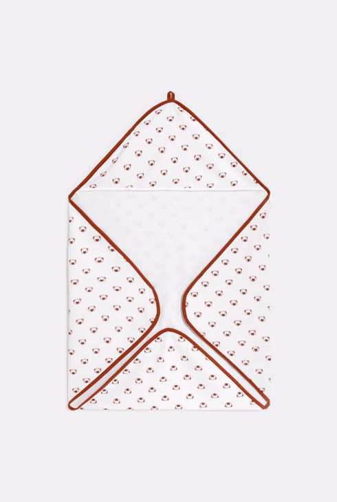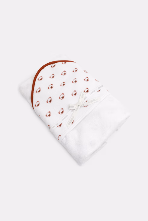 Mantellina da bagno in spugna e popeline marrone con orsetto per neonato