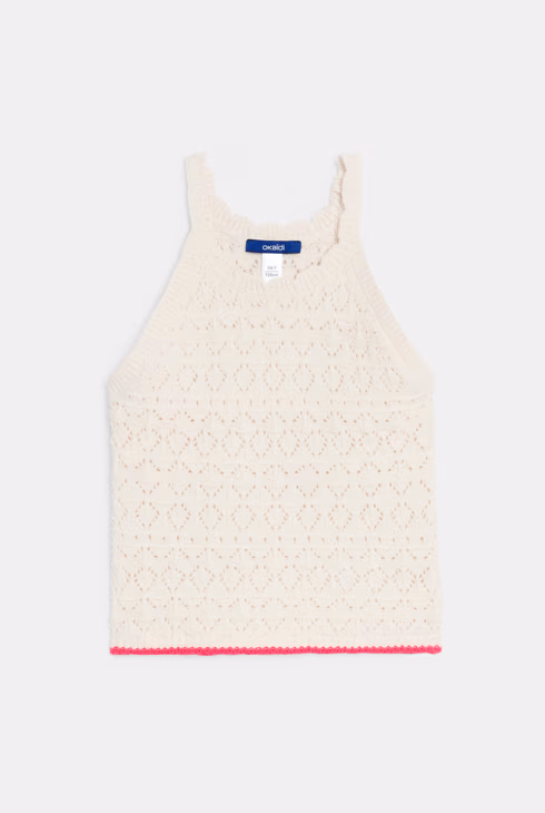 Maxi canotta beige in maglia all'uncinetto per bambina
