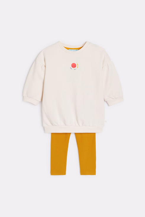 Maxi pull in tessuto felpato e leggings bianchi per neonata