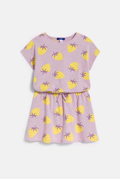 Maxi t-shirt malva in jersey con motivo fragola bambina