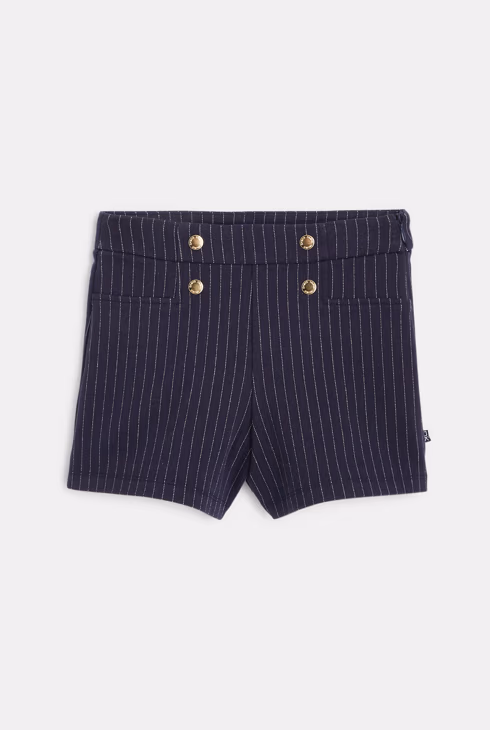 Pantaloncini a righe con doppia fila di bottoni effetto flanella blu bambina