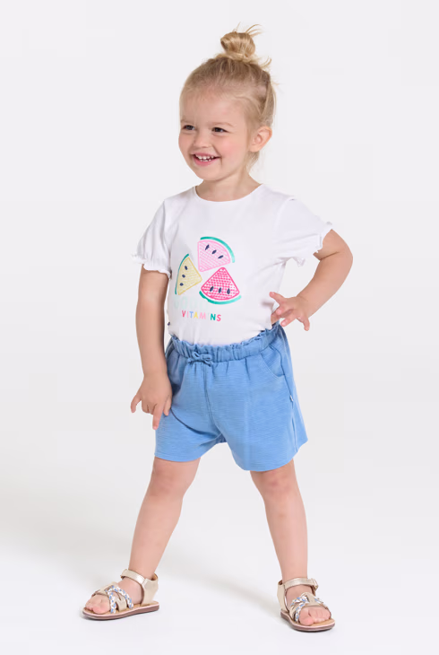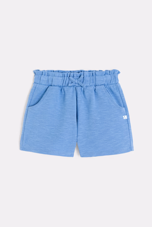 Pantaloncini a vita alta in tessuto leggero blu neonata