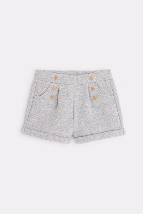 Pantaloncini in tessuto felpato con doppia abbottonatura grigio bimba