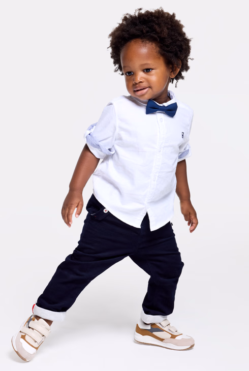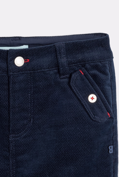 Pantalone in velluto fantasia con risvolti blu bimbo